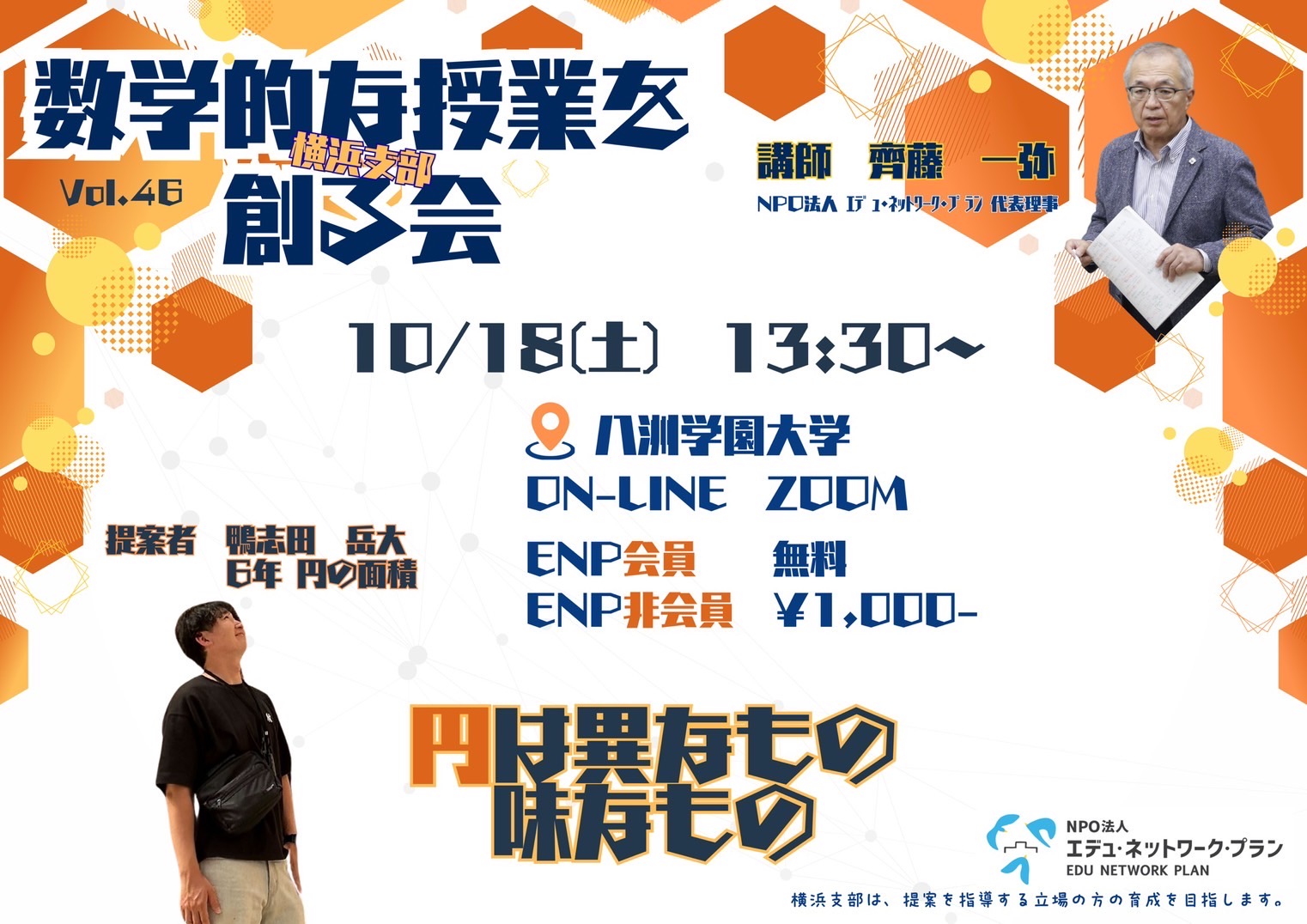 第2学年で学習した分割分数(操作分数)と第3学年で学ぶ量分数がうまくつながらないという困り感から、それを乗り越えるために、どの教科書でも単元の最後に位置付けられている「割合分数」と「量分数」との違いを導入場面から取り入れるというチャレンジングな提案でした。「分数を数として見る」というのはどう言うことか、「整数と小数をいつどのように結びつけていけば良いのか」「各学年で学ぶべきことは何か」などが協議会で話題となりました。齊藤先生のご指導から、「量をいかに表現するか」「分割分数とは何か」「見方・考え方の連続性を保証する文脈を描くには」という指導の原点となる本質を学ぶことができました。
