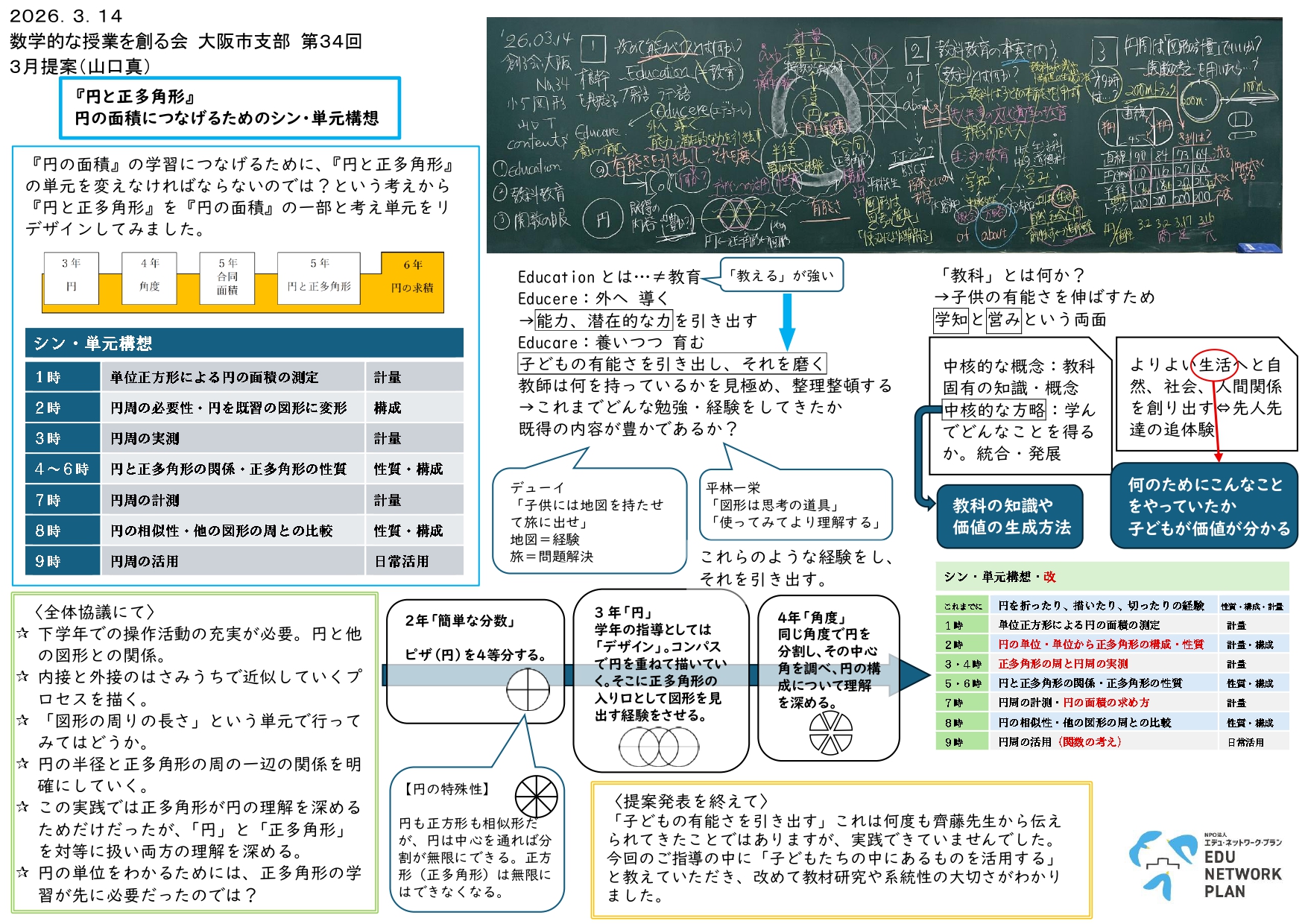齊藤一弥先生(ENP代表理事)からは、「概括的に捉える必要性は何か」「測定した結果を平均する方法を考察することで何を学ぶのか」「現実との乖離を認識し、最適解を追究する」の3点について御指導をいただきました。