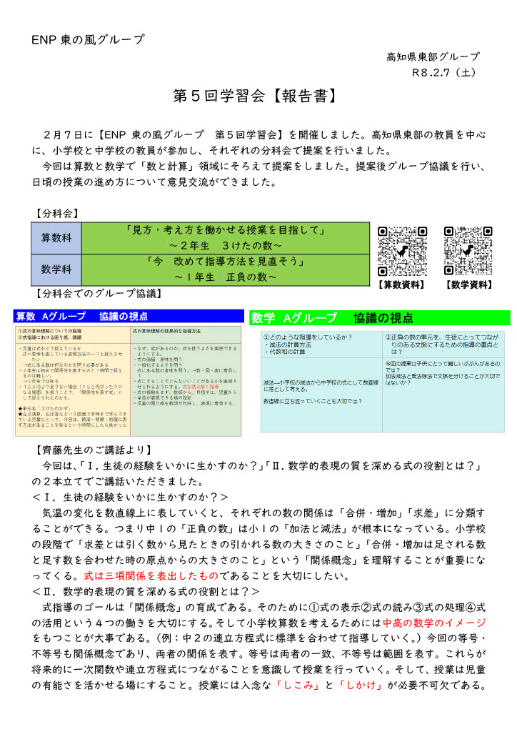 能力とは内容の深い理解に支えられてはいるが、指導要領解説には内容の記載がほとんどない。ここに矛盾が生じている。なぜ、6年で「円の面積」か。それは、求積の考え方「a×b」の構造を子どもたちが見抜き、「乗法的思考」をさせたいからである。また、曲線で囲まれた図形の時には、まずは概括的に捉えることで大きな間違いをせずに済む。しかし、それでは求積の精度が低いため、極限の考え方を経験することで、より精度の高い求積方法へと近づいていく。既得の求積方法から類推し、規則性や関連性を見いだし、何が決まれば面積が決まるのか関数の考えを用いて、解決に生かしていくことが大切である。円周率は第5学年で学習するのに、なぜ円の求積は第6学年なのかについてH19のC S では円周率は「図形領域」に、円の求積は「量と測定領域」に属していた。しかし、H29のC S では、円周率も円の求積もどちらも同一の「図形領域」となった。このメリットを生かし、カリキュラムデザインの再考をすべきなのではないか。円の半径が変われば、円周の長さが変わることに着目し、合同な図形や正多角形の学習と関連づけながら、極限の考え方を経験していく。このように今までのの算数・数学教育のカリキュラム・デザインを見つめ直し、単元の本質的な問いを探究していくことで、よりよいカリキュラム開発へとしていきたい。
